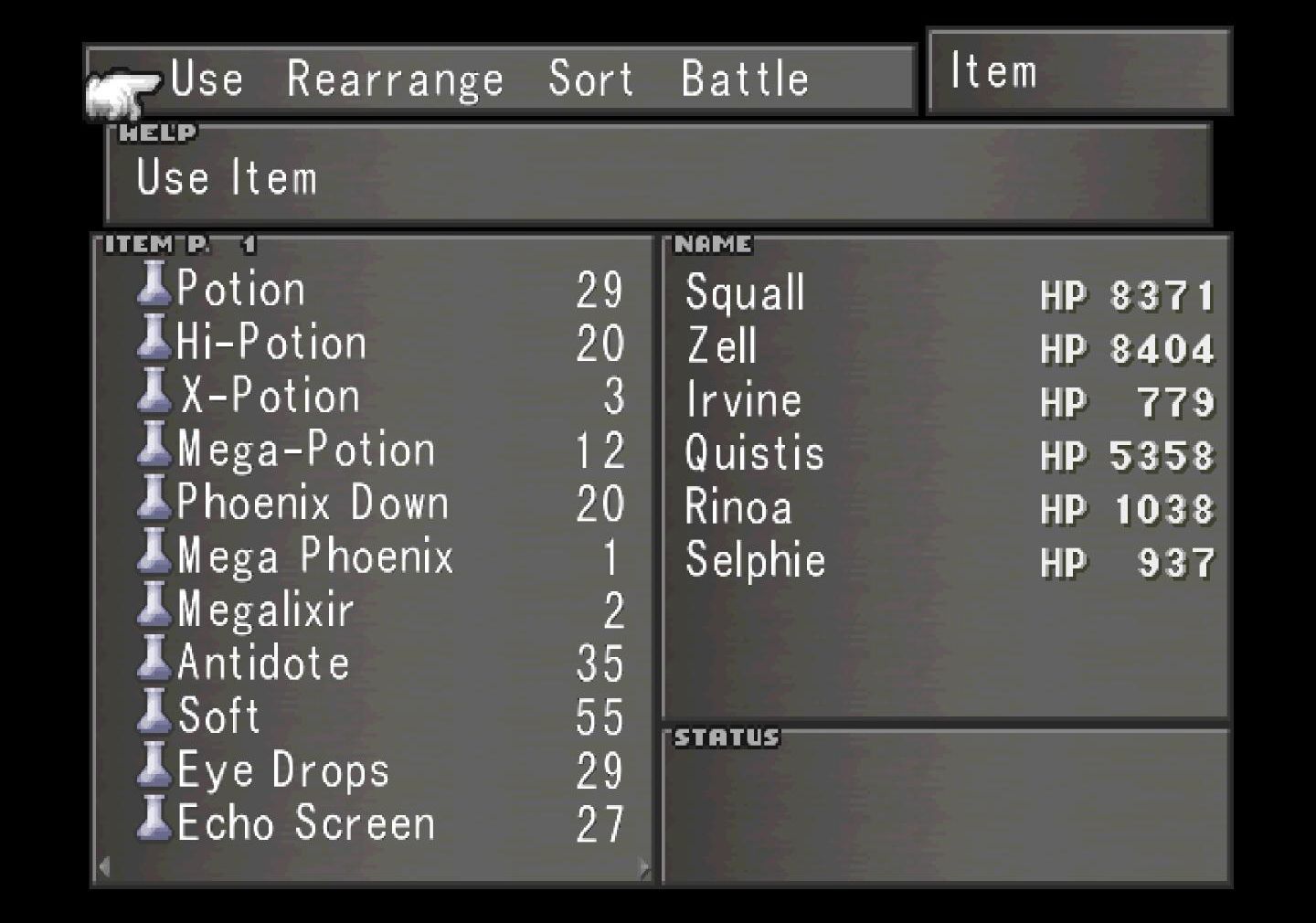 Items in Final Fantasy VIII are split into several categories; Consumables, Key Items, Magazines, Materials & Weapons.